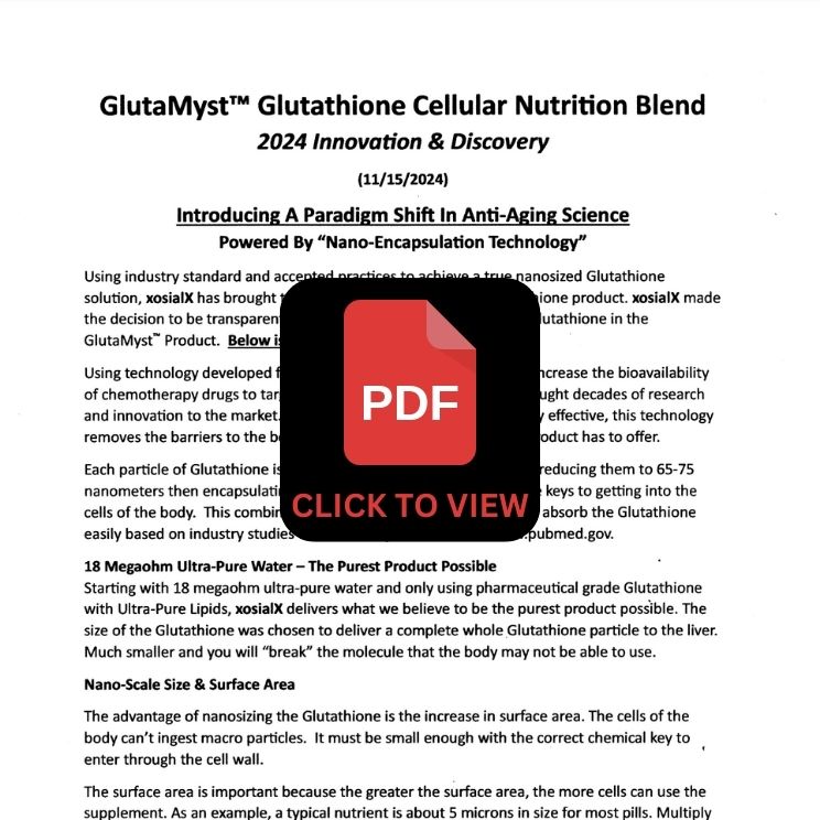 “GlutaMyst provides glutathione, the most crucial antioxidant for intracellular protection, in a lipid-encapsulated nanoparticle that can access the bloodstream in seconds. Combined with XanthoMyst, the most potent antioxidant nature has designed in the Mangosteen fruit, xosialX has formulated the most effective antioxidant 1-2 punch in the industry!